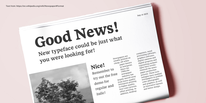 NCT Larkspur consists of 12 main styles and 6 small cap styles. It supports all major European languages, Vietnamese, and multiple languages in the Cyrillic script. All styles have the same 1107 glyph character set.